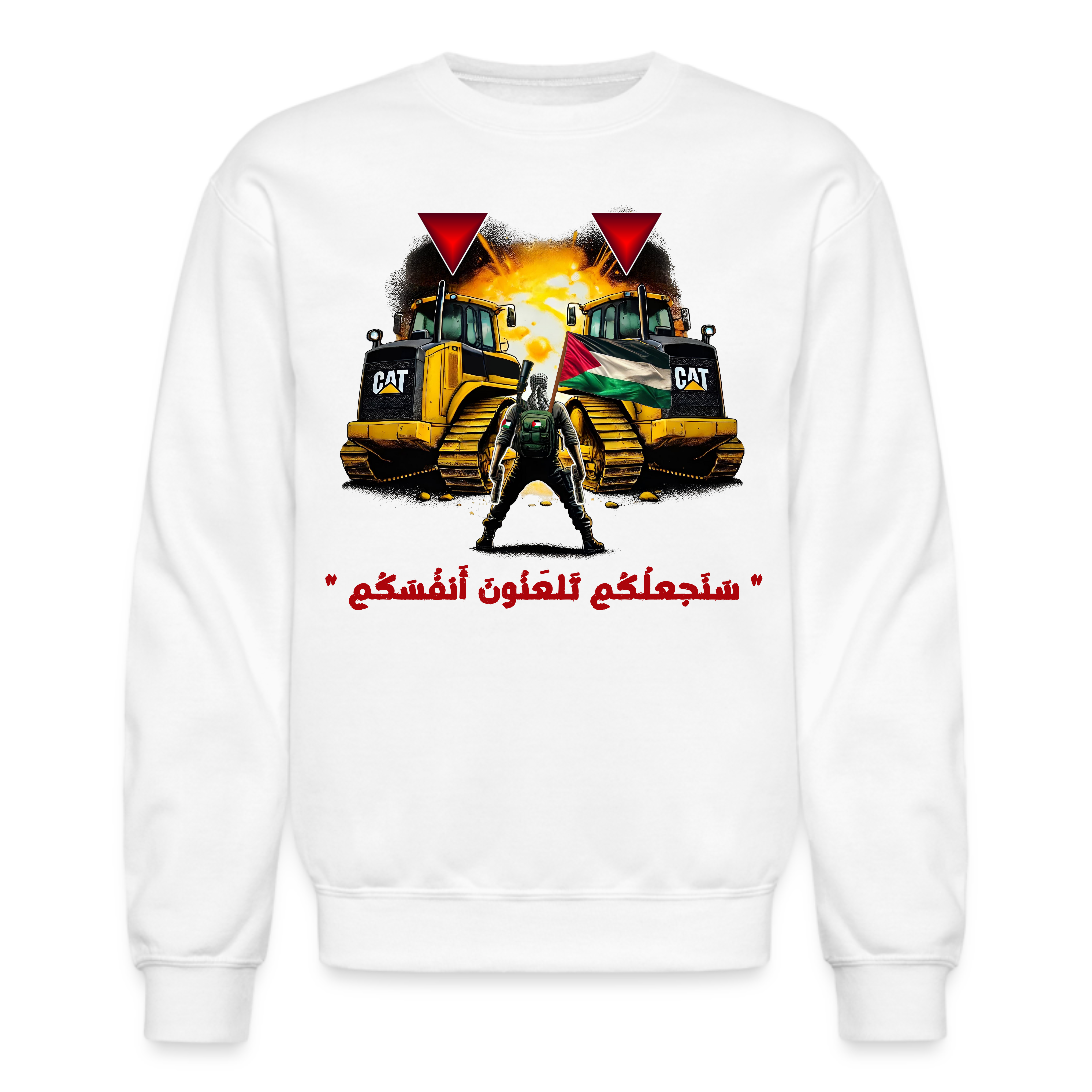 الحياة اليومية لمدمر الجرافات. هذا التصميم فيه مقاتلاً فلسطينيًا يدمر جرافتين. كن جزءًا من المقاومة وارتدِ هذا