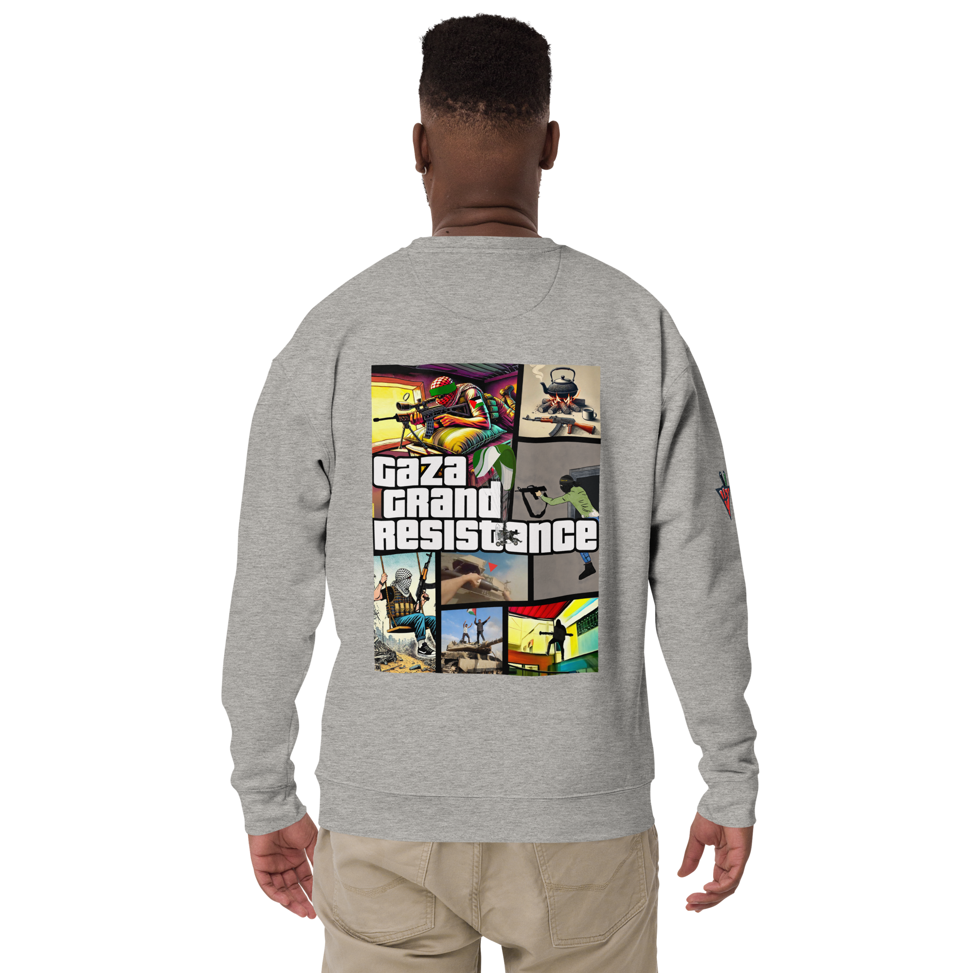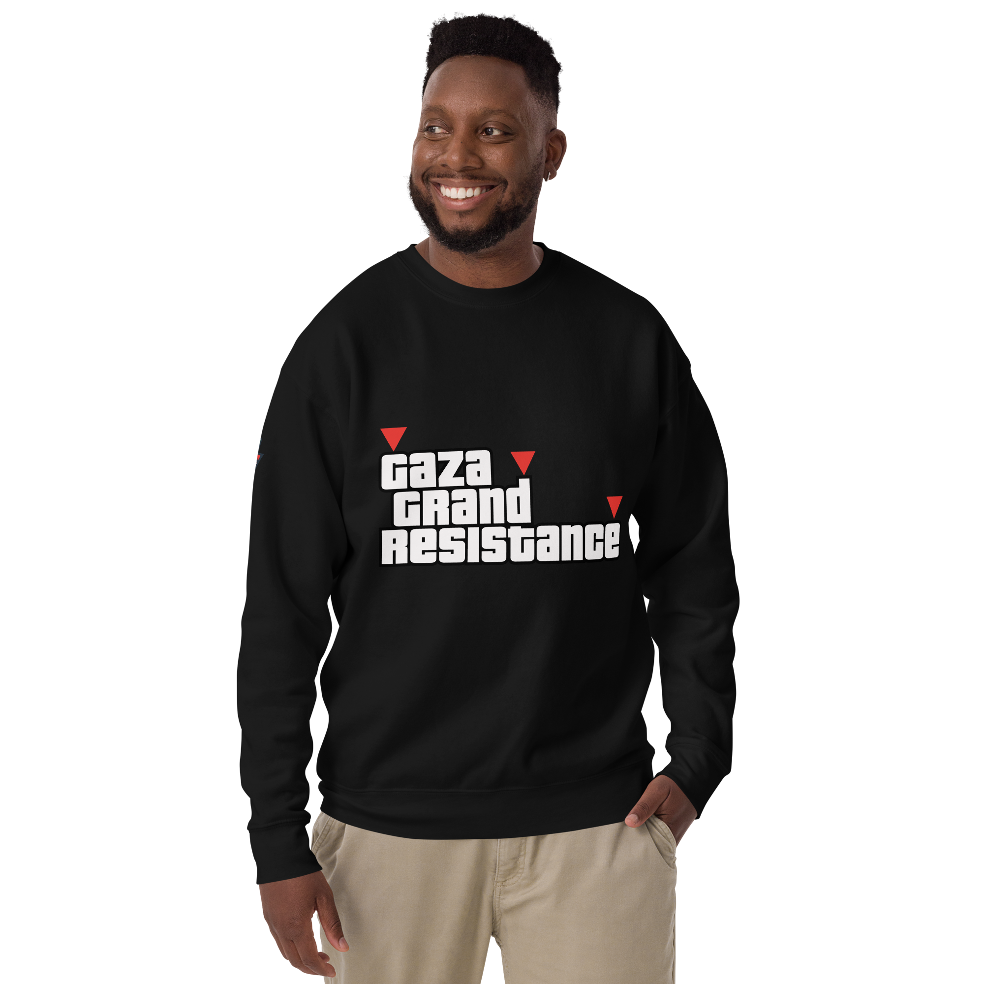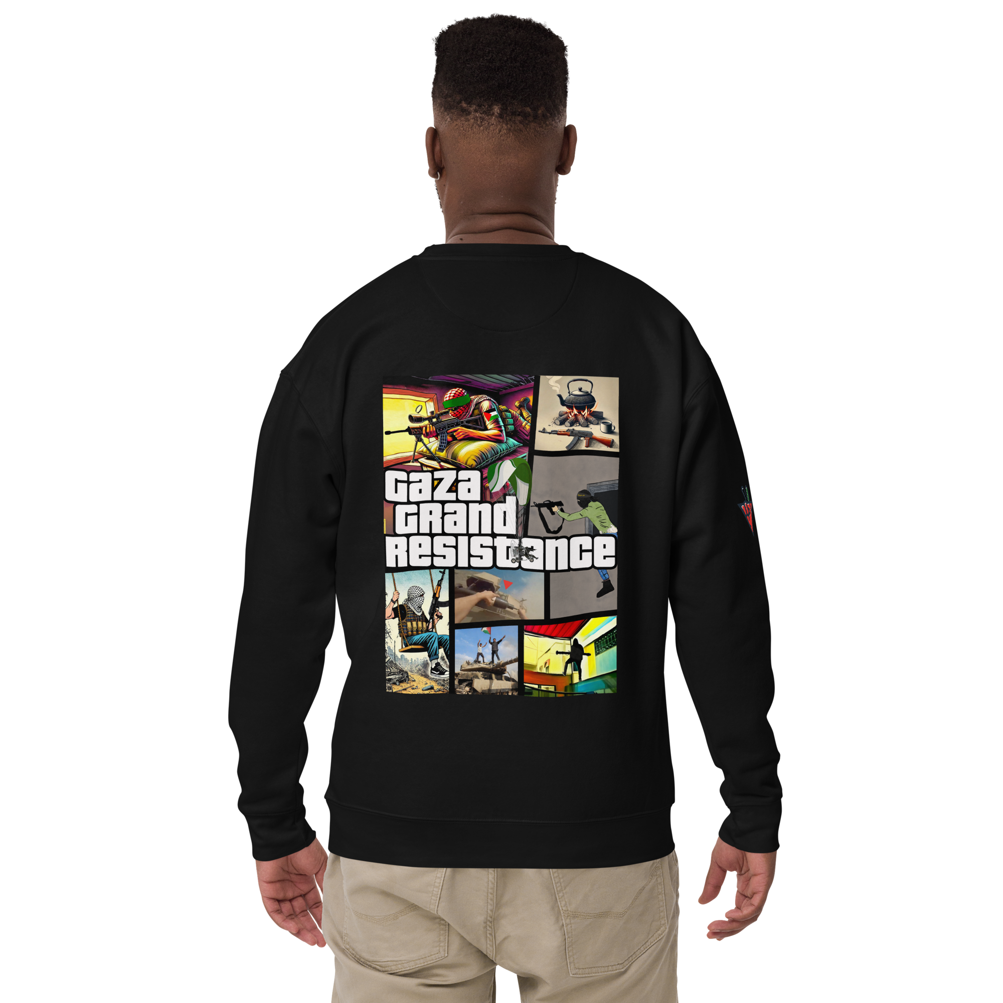 Embodying the spirit of defiance and resilience, the Gaza Grand Resistance sweatshirt is more than just apparel—it’s a statement. Inspired by real moments from the struggle for freedom, this design features a bold, stylized font reminiscent of classic gaming culture, symbolizing the strategic and unyielding nature of the resistance.