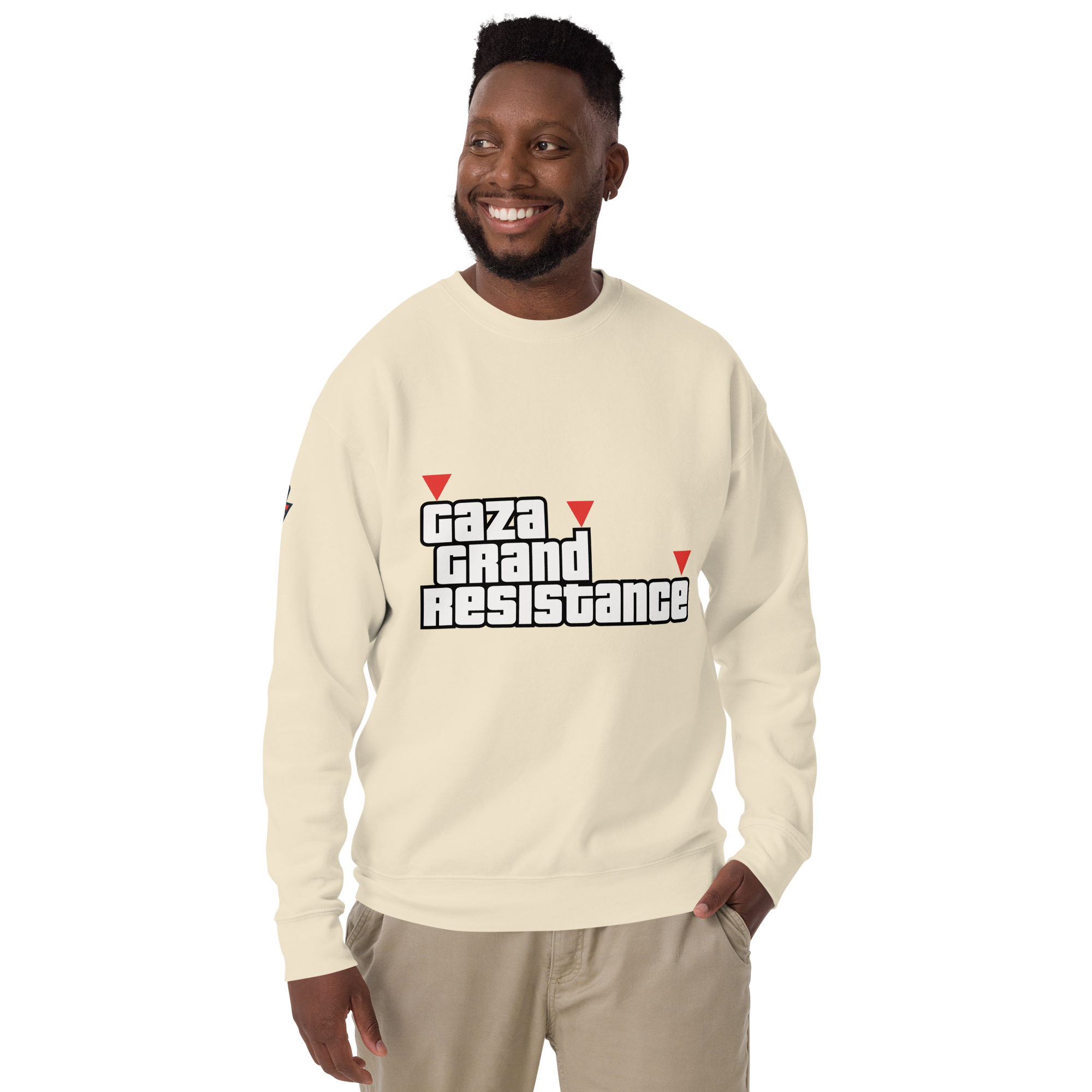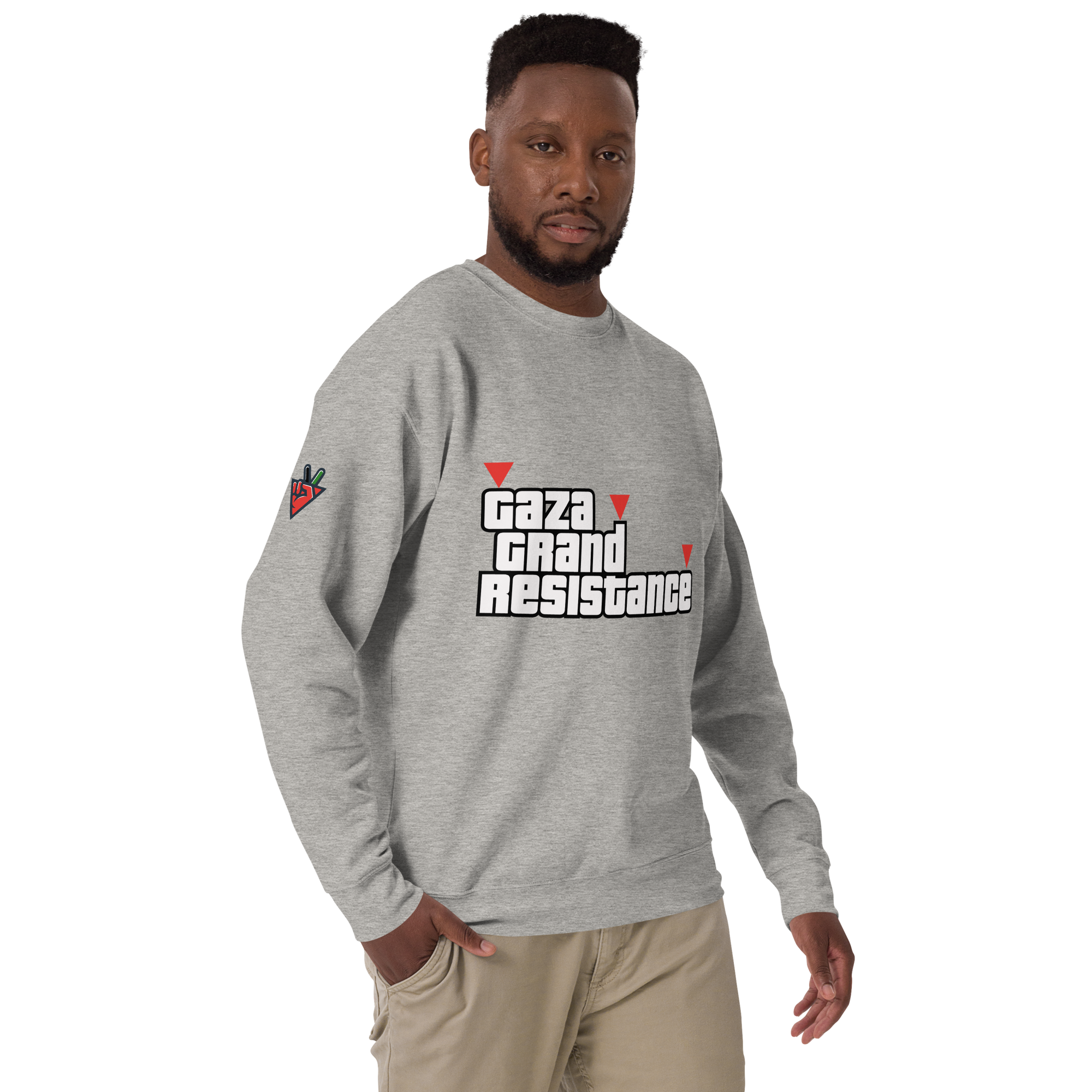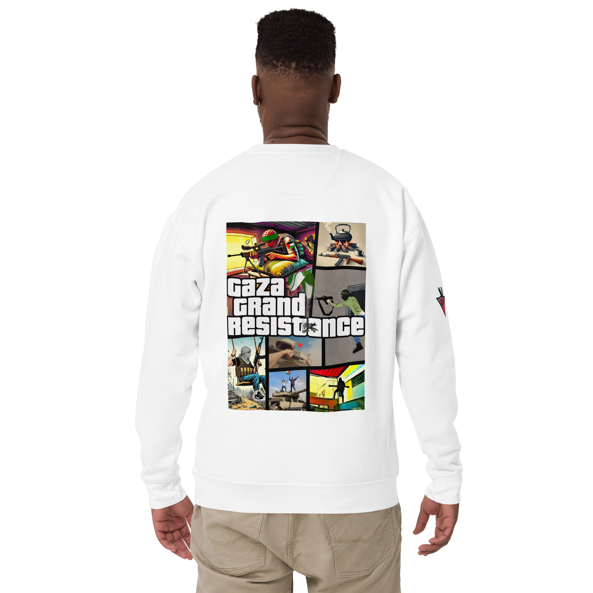 Embodying the spirit of defiance and resilience, the Gaza Grand Resistance sweatshirt is more than just apparel—it’s a statement. Inspired by real moments from the struggle for freedom, this design features a bold, stylized font reminiscent of classic gaming culture, symbolizing the strategic and unyielding nature of the resistance.