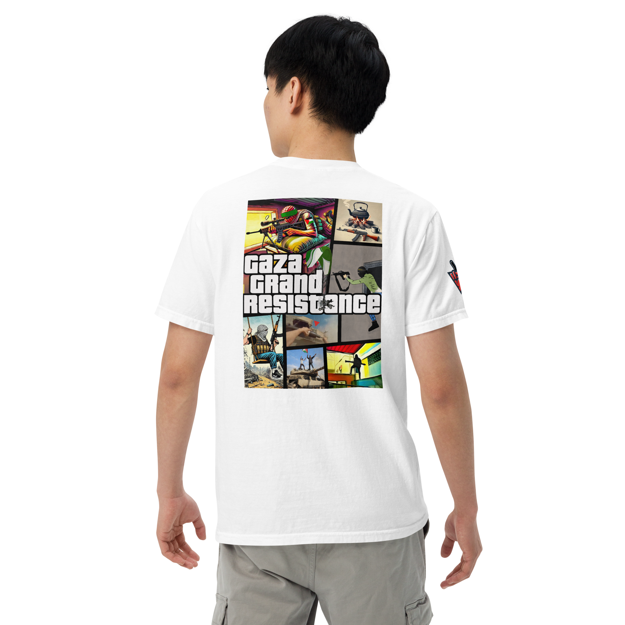 Embodying the spirit of defiance and resilience, the Gaza Grand Resistance sweatshirt is more than just apparel—it’s a statement. Inspired by real moments from the struggle for freedom, this design features a bold, stylized font reminiscent of classic gaming culture, symbolizing the strategic and unyielding nature of the resistance.