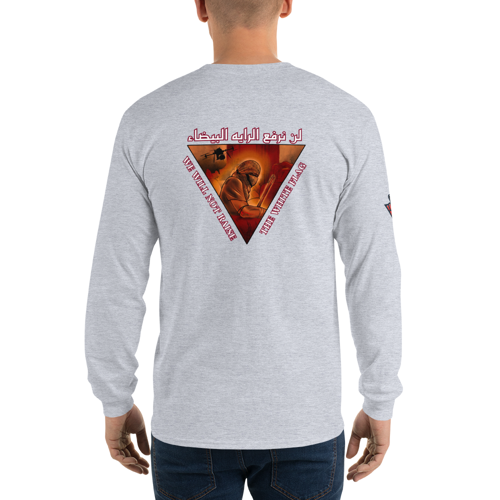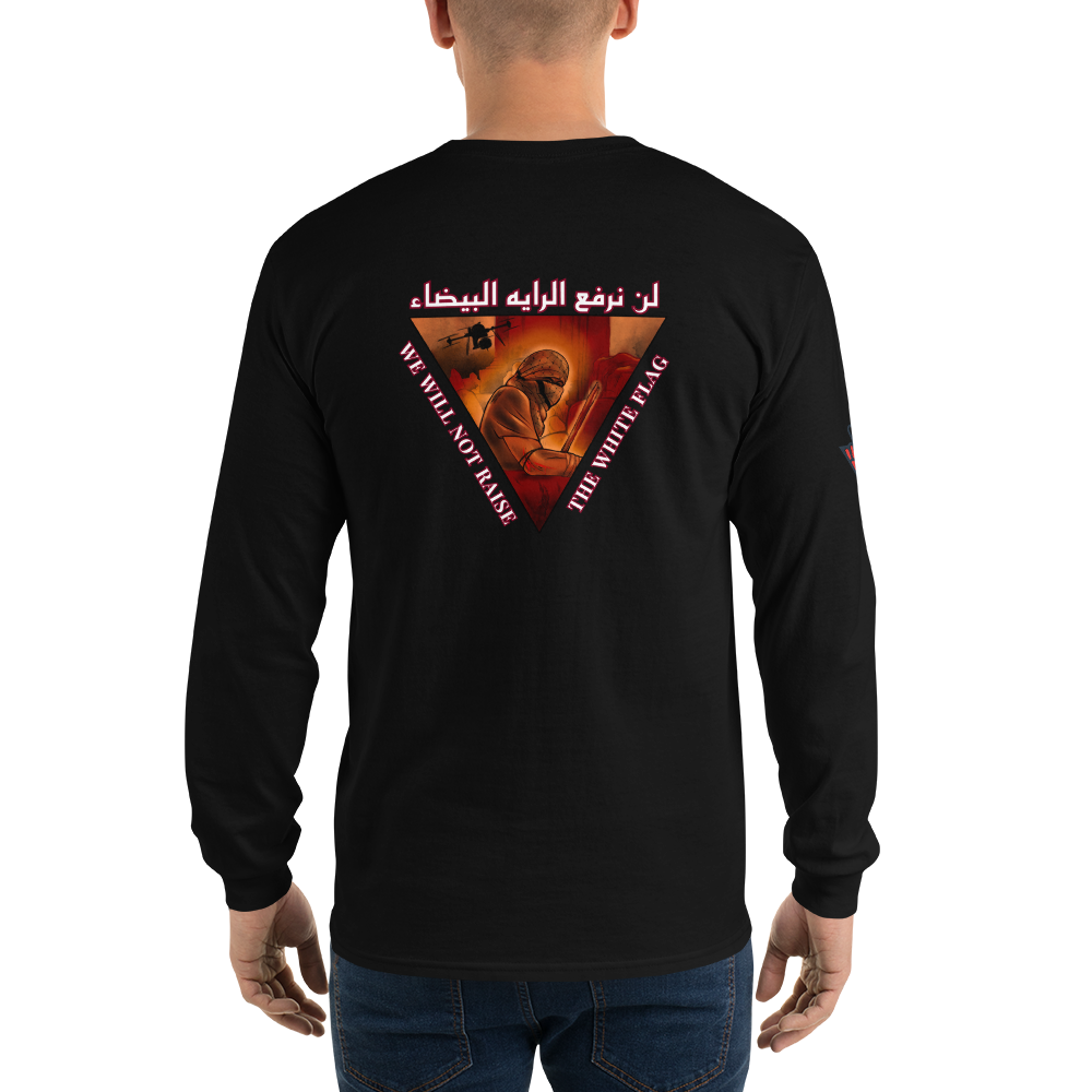 “We have resolved to defend our people with all our might.” These words, emblazoned on the front, embody a determination that lives beyond any one individual. The message continues on the back: “We will not raise the white flag,” a promise of resilience, a refusal to surrender.