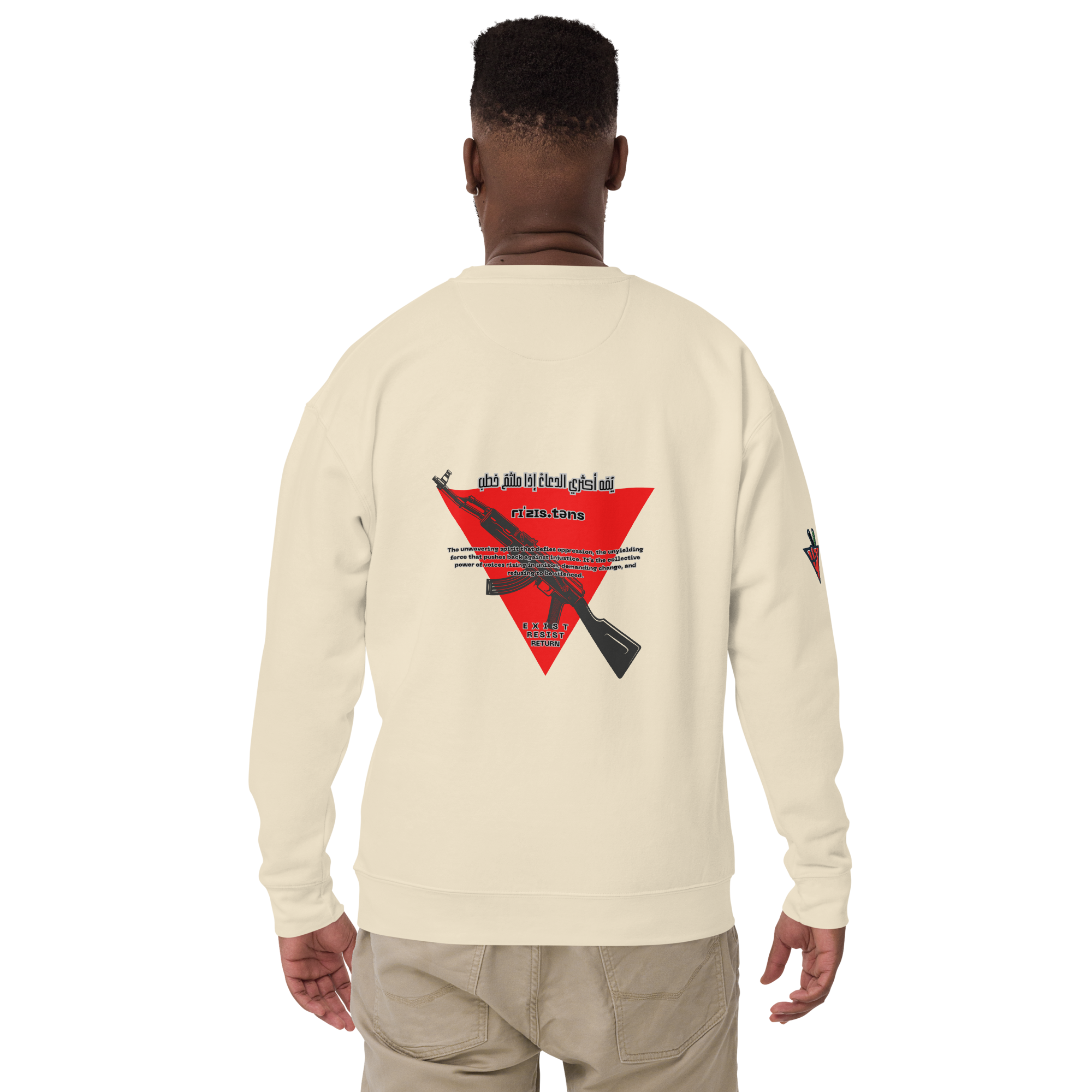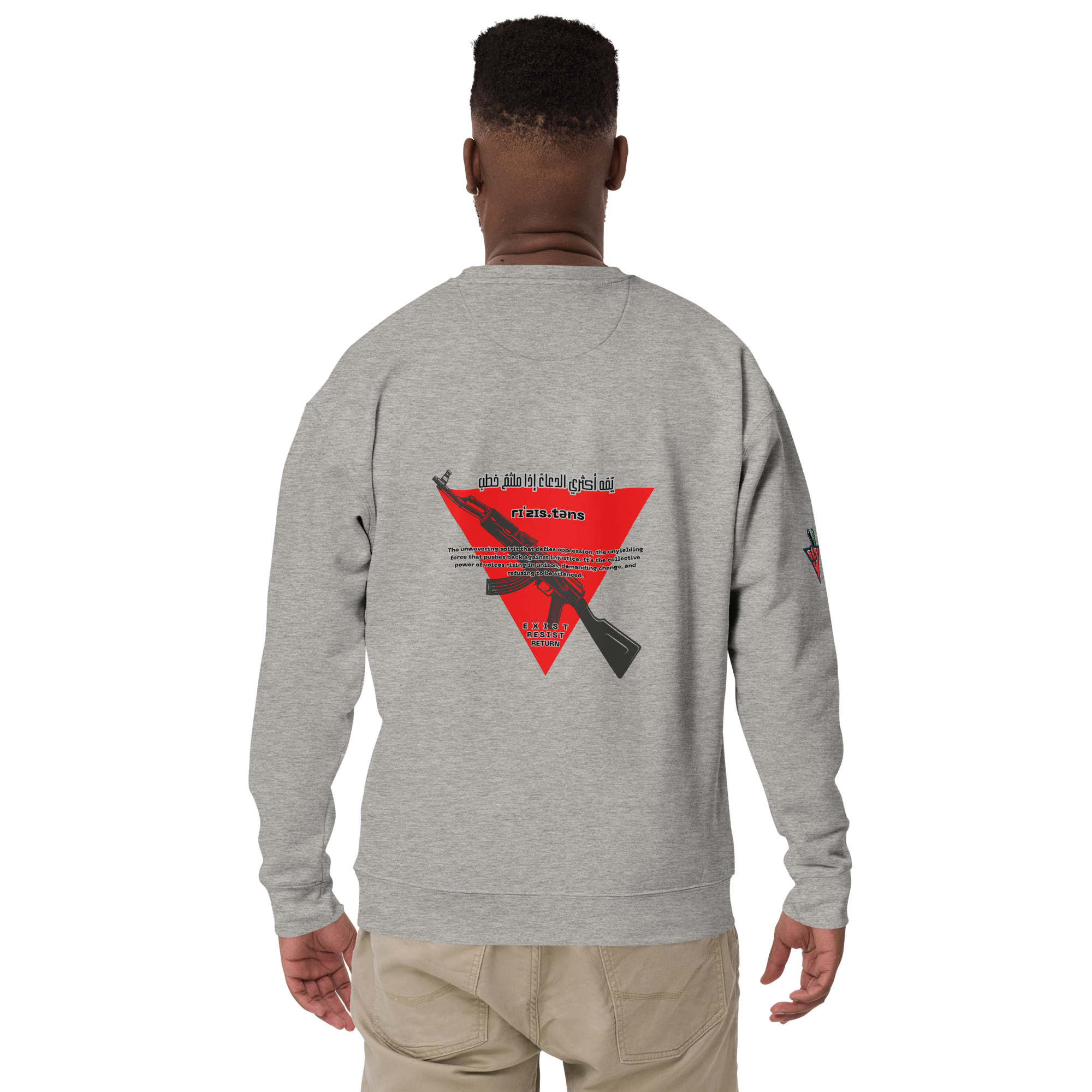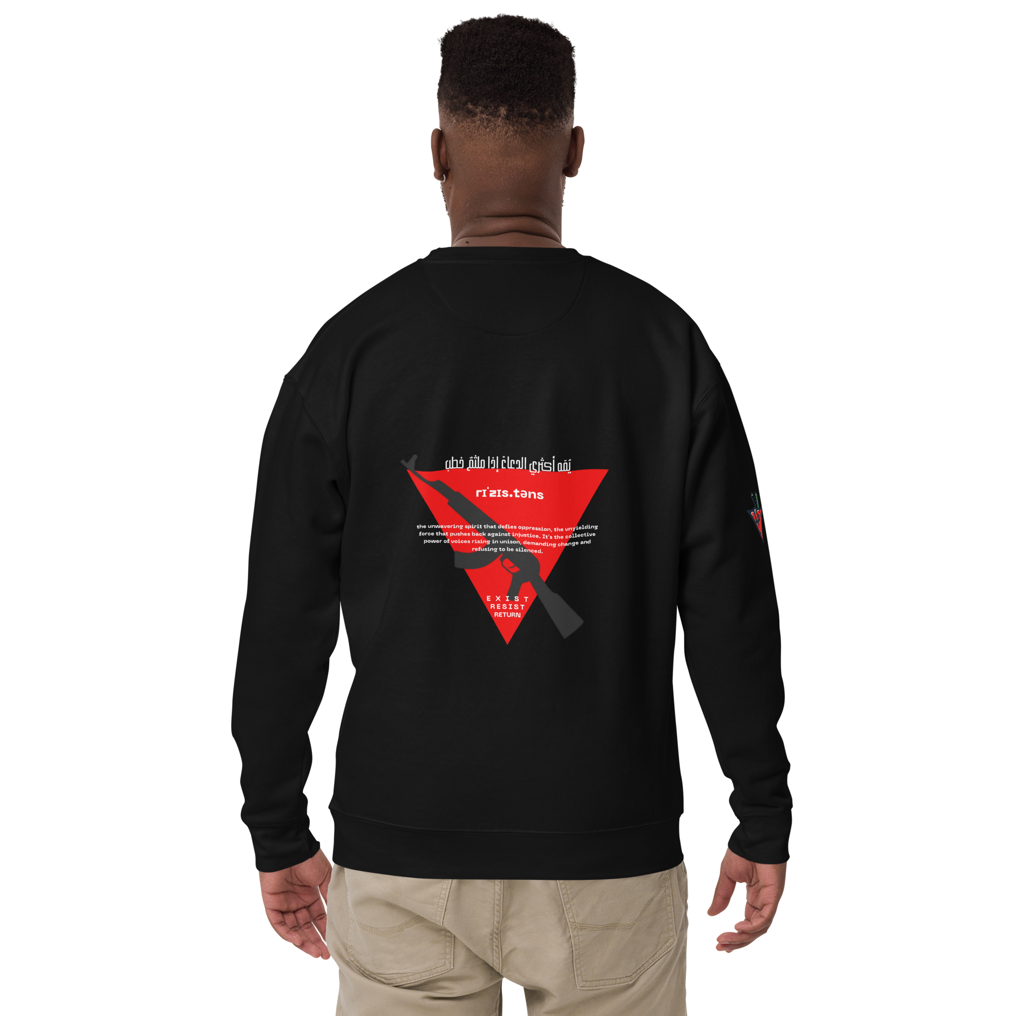 This powerful design, inspired by the mantra “Exist, Resist, Return,” is now available across our full range of apparel.