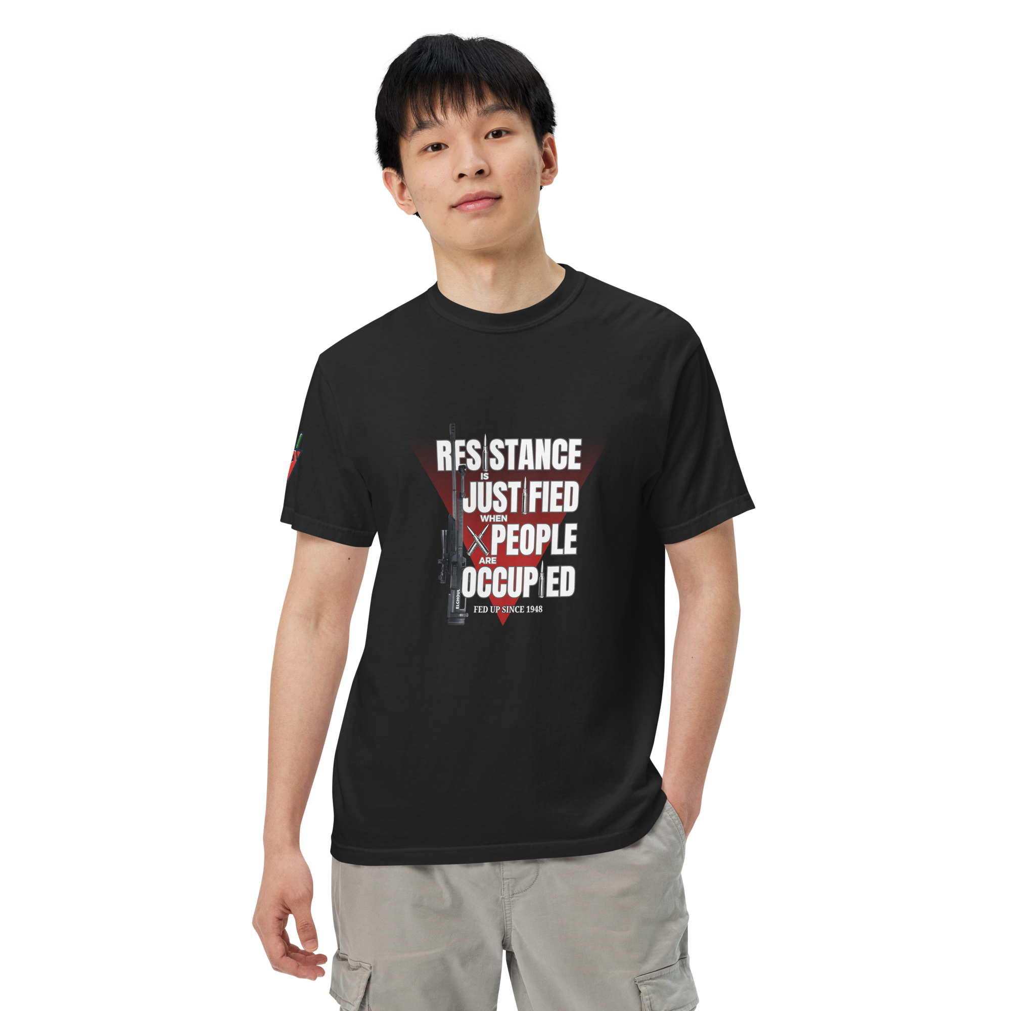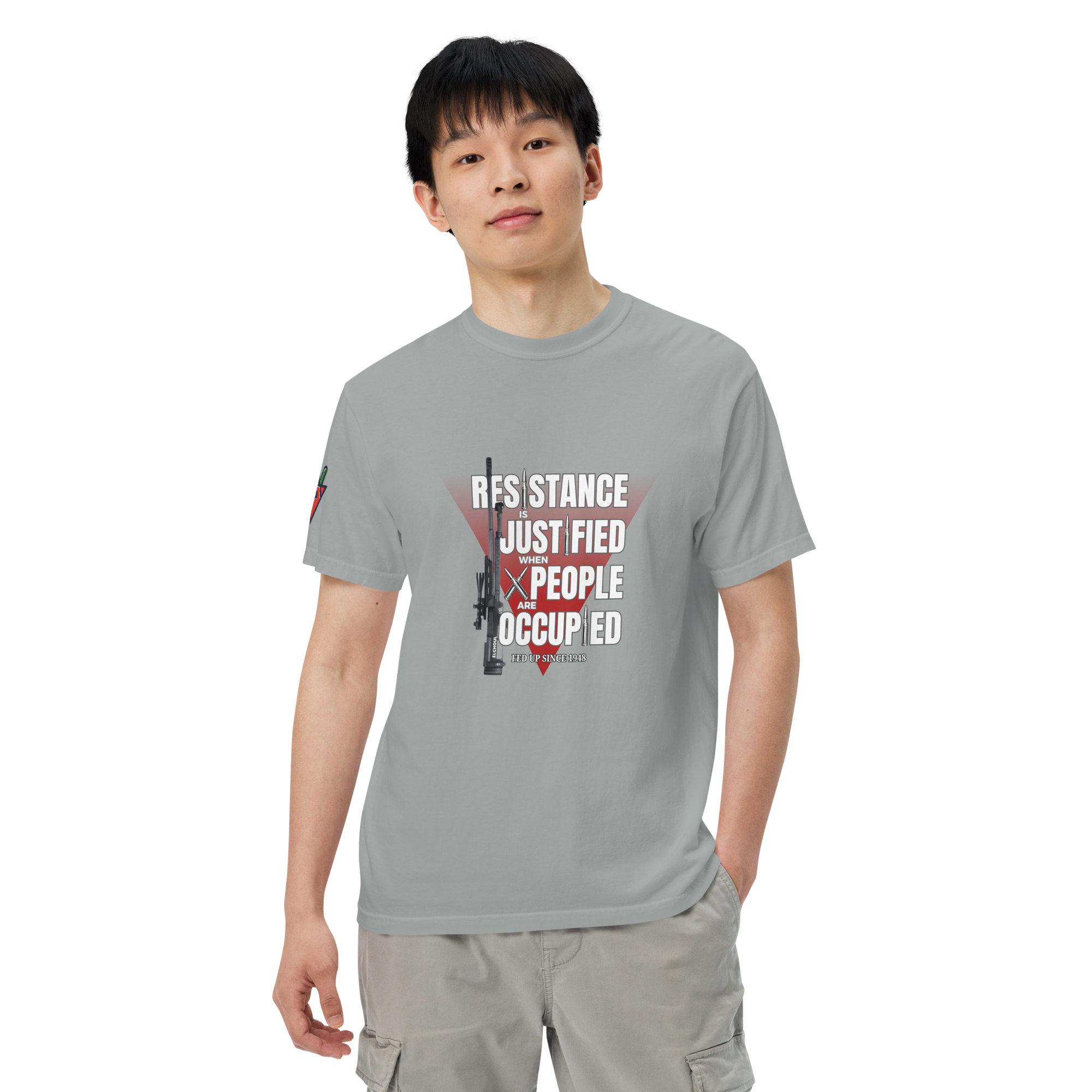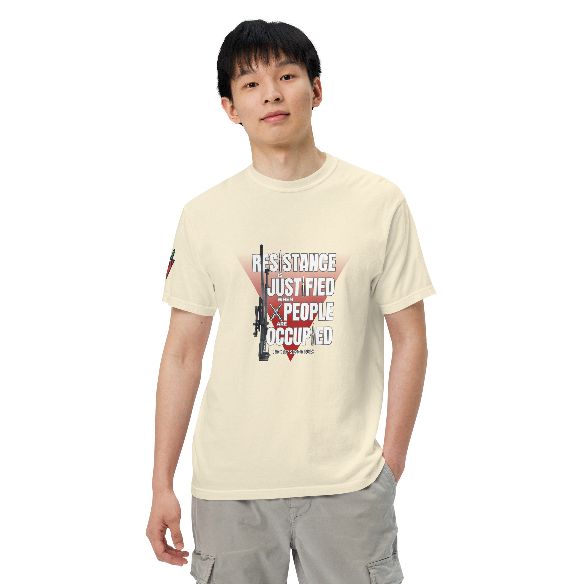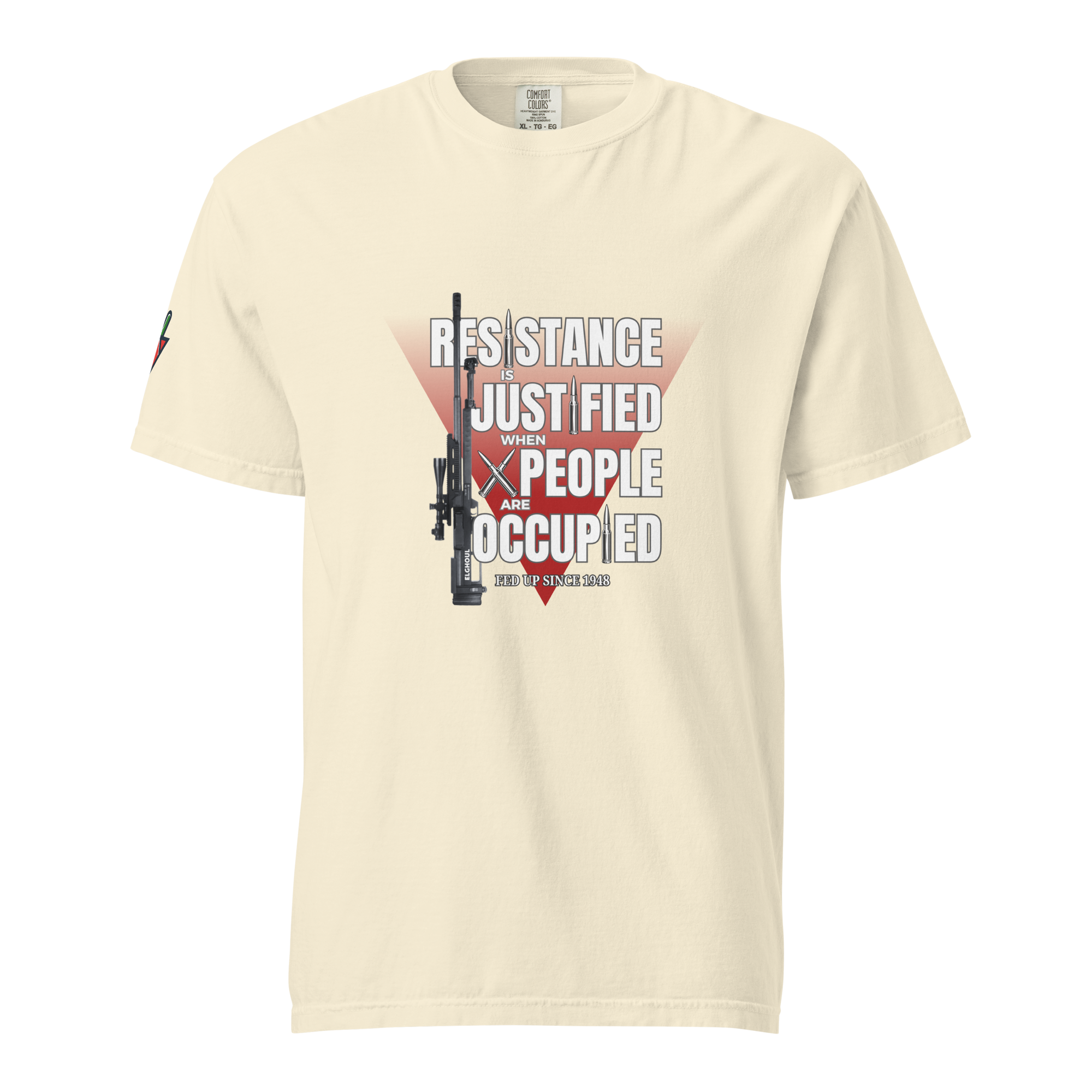 “Resistance Is Justified” is paired with a powerful symbol: the elghoul Sniper. This emblem represents precision, focus, and unwavering resilience in the face of occupation. At Viva Resistance, we believe in crafting designs that not only tell a story but carry the weight of a movement. By incorporating the elghoul Sniper, we remind the world of the strength and determination required to resist oppression. This shirt is more than just apparel—it’s a call to action, a symbol of solidarity with those fighting for their freedom.