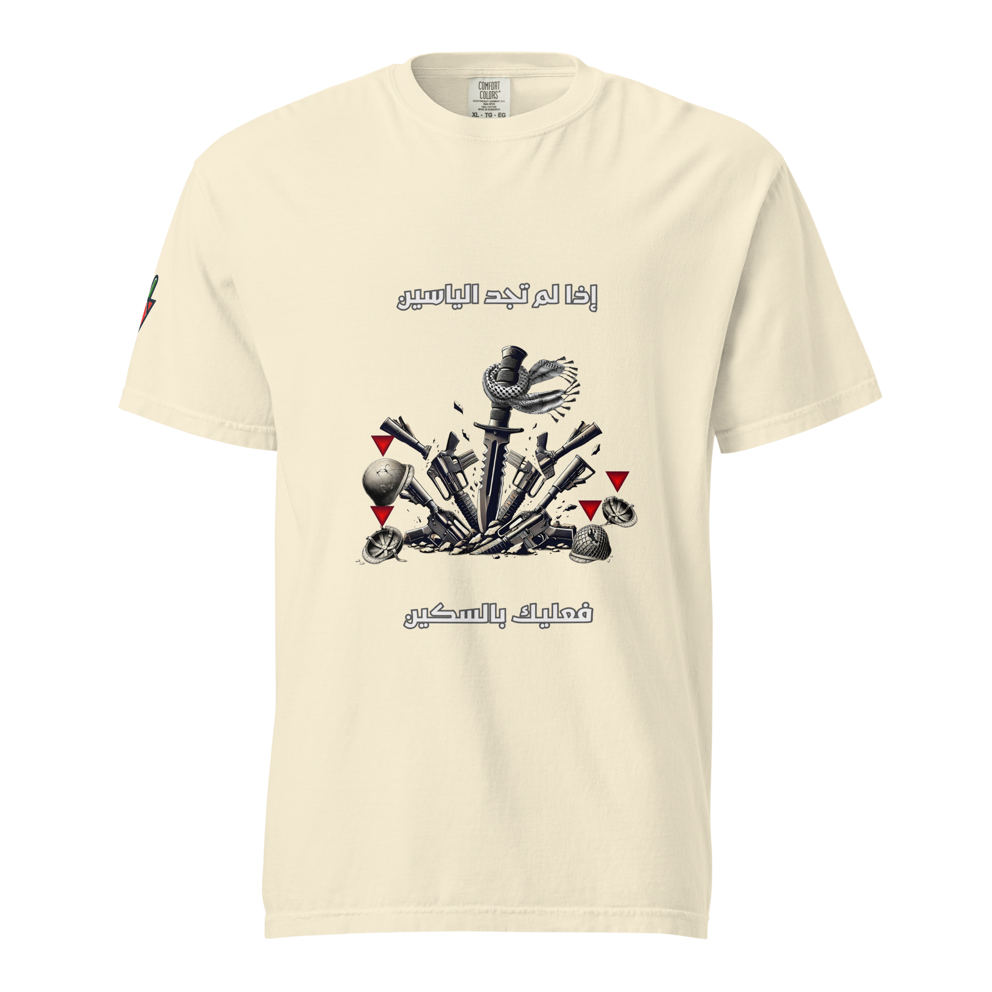 Honoring the bravery of Gaza’s resistance: with nothing but a knife, they seized their enemy’s weapons and destroyed a tank, embodying unyielding courage. 100% of proceeds go to Gaza. For the first week, enjoy 10% off. Support the cause.